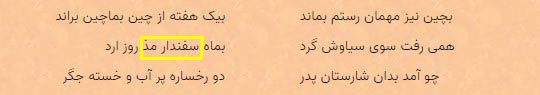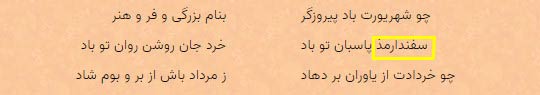 سفندارمذ پاسبان تو باد ………… خرد جان روشن روان تو باد
