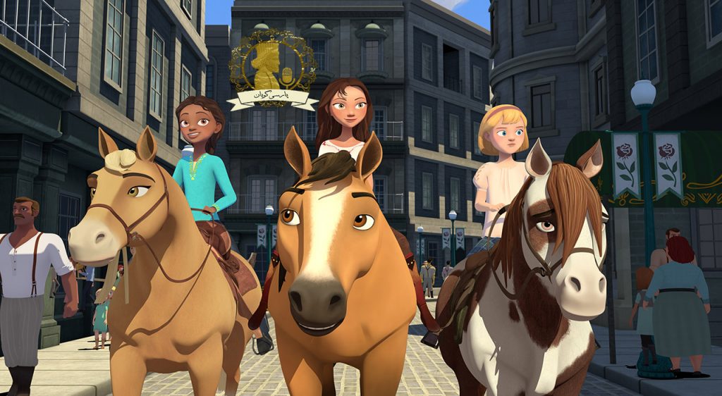 این اسب، نخستین دوست لاکی در شهر تازه «میرادرو» است. لاکی زمان ها پیش مادرش را از دست داده و عمهاش «کورا» با آنها زندگی میکند. کار پدر لاکی راهاندازی و پیشبرد راهآهن شهر است. جایگاه (محیط ) ناشناخته و تازه برای لاکی که به زندگی در شهری بزرگ خو کرده و دوستانی همدل (صمیمی ) در آن داشته ترسناک است. به همین فرنود زمانی سرکشیهای اسب وحشی را که گرفتار رامکنندگان اسب شده و زندانی آنها است میبیند، با او احساس نزدیکی و همدردی میکند. اسب هم وقتی احساس میکند شرایط لاکی با او برابر بوده نسبت به او مهربان است. اسب توسن( وحشی ) با سرسختی بیش به هیچکدام از رامکنندگان نمی هلد ( اجازه نمی دهد ) از او سواری بگیرند؛ ولی در برابر با لاکی رفتار خوبی دارد و حتی به او که هنوز سوارکار توانا (ماهری ) نشده می هلد (اجازه میدهد) که سوارش شود. زمانیکه مردِ دارنده اسب، رفتار اسب وحشی را با لاکی میبیند بر آن می شود اسب را به او ببخشد. لاکی نام اسبش را اسپریت به چم رام نشده میگذارد و بر آن می شود بگذارد همیشه آزادانه زندگی کند. او در دبستان با دو دختر دیگر به نامهای «ابیگل» و «پرو» آشنا میشود که هرکدامشان اسبی برای خود دارند. دخترها به لاکی سوارکاری را یاد میدهند و با یکدیگر ستورگاهی (اسطبلی ) میسازند که اسپریت آزادانه بتواند از آن آمد و شد کند. آنها بسیار زود با یکدیگر دوستان همدلی (صمیمی ) شده و داستان جوییشان را با اسبهایشان آغاز میکنند.