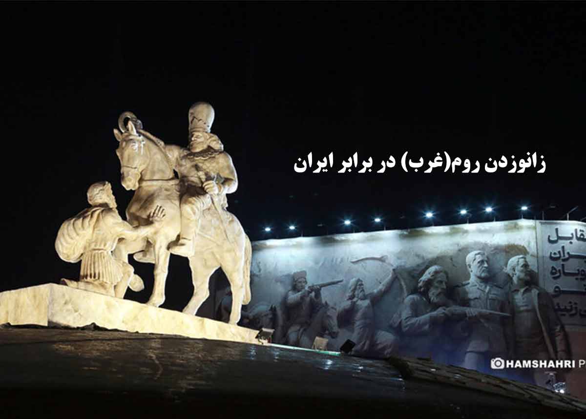 در دل تهران، میدان انقلاب، پیکرهای سترگ و اندرزآموز به نمایش درآمد به نام «زانوزدن والریانوس برابر ایران». این پیکره بازتاب یکی از درخشانترین رخدادهای تاریخ ایران است؛ هنگامی که شاهنشاه شاپور یکمِ ساسانی، با خرد و دلیری بیمانند، والریانوس، شاه روم، را در نبرد ادسا به زانو نشاند و اقتدار ایران را در برابر زور و هوسجویی بیگانگان به جهان نشان داد.